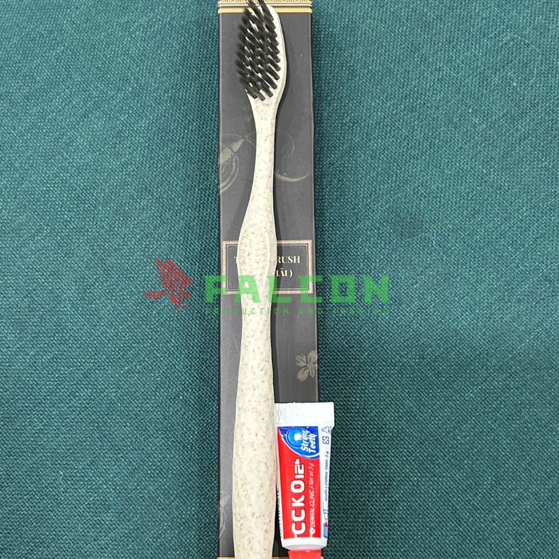 Bàn chải lúa mạch khách sạn là lựa chọn hoàn hảo cho đơn vị ưu tiên sản phẩm xanh. Thiết kế nhẹ, dễ cầm và có lông bàn chải mềm an toàn. Chất liệu nhựa lúa mạch mang lại cảm giác gần gũi, thân thiện và thân thiện với môi trường. Màu sắc nhã nhặn như nâu và trắng phù hợp nhiều không gian khách sạn. Sản phẩm đi kèm kem đánh răng 3g và bao bì in logo thương hiệu, giúp tăng tính chuyên nghiệp và sang trọng.
